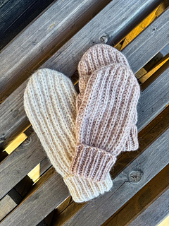 Vibes Mittens Mini are chunky and soft mittens that keep little hands warm both in the stroller and on the playground. The mittens are knitted in Vibes, which is super soft, itch-free, and shed-free – making it perfect for the little ones! You start with ribbing on the cuff, then continue in brioche sts for the rest of the mitten. In the four largest sizes, increases are worked for the thumb along the way. Both decreases and the thumb are knitted in brioche sts. Mama & Mini match? Check out Vibes Mittens for adults <3