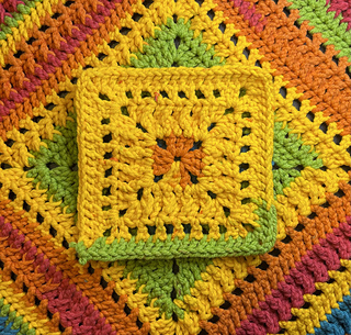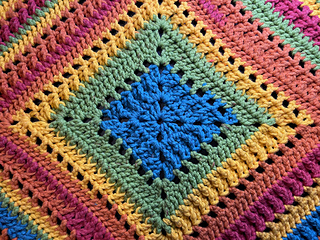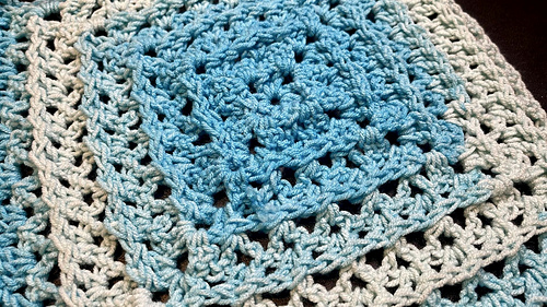 There are 5 square patterns that can be made into squares and joined. You can continue with repeats for 4 of the squares to make them into a blanket using the one pattern.