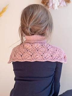 Vienna Neck is worked bottom-up in a textured stitch pattern. Decreases are made at each side so the neck drapes neatly over the shoulders. Finally, the neckline is finished with a ribbed collar.