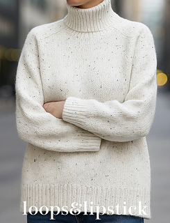Simple turtleneck jumper knitted in tweed yarn It is knitted top-down with saddle shoulders, which makes the work grow naturally over the shoulders and chest, and allows you to try it on as you knit to get the right lenght. It also requires minimal assembly.