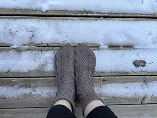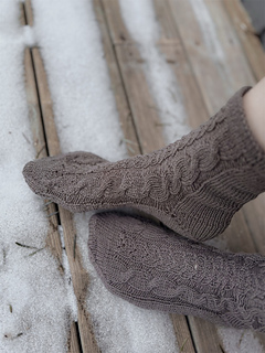Vincencia socka stickas från skaftet och ner mot tån. I början av skaftet stickas en vikt kant. Framsidan på sockan stickas enligt diagram och baksidan i slätstickning. Hälen formas med förkortade varv.