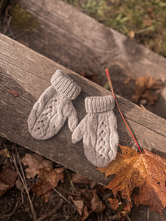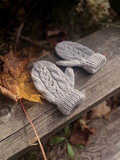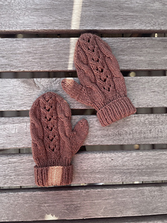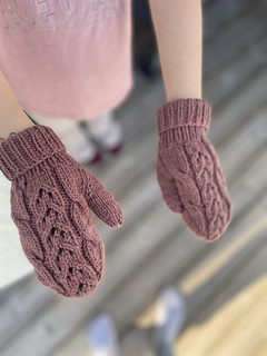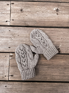 The Vincencia mittens are worked from the cuff upwards in the round. The cuff is worked in ribbing, after which the mitten is divided into two sections: the palm (worked in stockinette st) and the back of the hand (worked following chart).