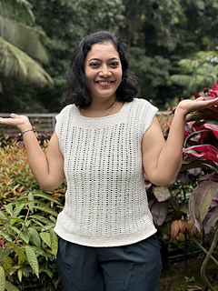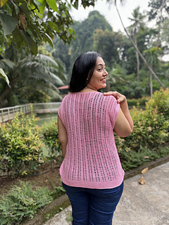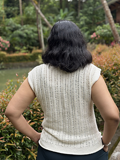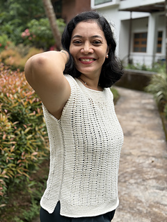 The tunisian lace top is worked in two panels which are then seamed at the shoulder and sides. The pattern is written for 9 sizes from XS to 5XL