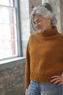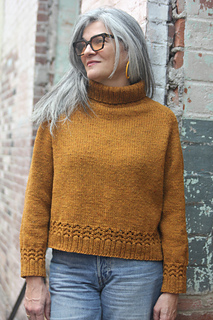 The beauty of Vinho Verde is the simple silhouette, paired with a bold hem. I loved the fit of the abbreviated saddle on Dubbel Dark, but lengthened it a little here for added structure, and paired it with some sleeve-specific shaping. Soft yarn and a short turtleneck added exactly what I need for cool weather wear.