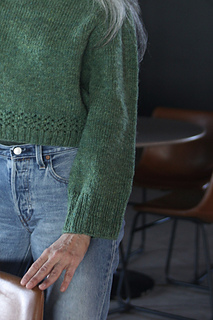 The Mountain Mohair I used is limited in quantity for a few months, but Kate from GMS was happy with her test in Weekend Wool. Images of her sample are included to show Weekend Wool as an option. Note though, that her test knit has a few modifications from the pattern as written, including more fitted sleeves, lace cuffs, extended shoulder saddles, and a longer body.