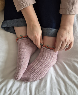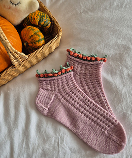 Inspired by a trip to the pumpkin patch on a chilly Autumnal afternoon, the focus of these socks is the whimsical layered cuff. There is no sewing involved to join the layers together, just knitting. Pumpkins and their curling vines delicately sit at the cuff moving into a basket weave pattern down the rest of the sock. The final details are an eye of partridge heel and a rounded toe, two of my favourite elements for a well fitting sock. I used a vintage inspired colour palette for my socks but they would look wonderful in classic, bright Halloween-y colours, or how about a speckle or self-striping yarn for the ‘basket’ part of the sock. I can’t wait to see what colours you use for this playful design.