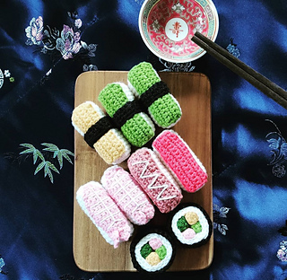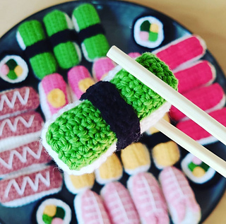 Virkad sushi i bomullsgarn.