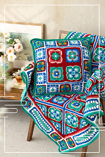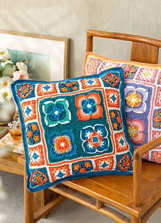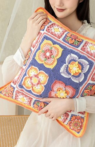 The inspiration for this patchwork blanket comes from the Pingqi Caihua (Luo Wen Die Sheng) decorative motif documented in the Song Dynasty architectural treatise “Yingzao Fashi.” The blanket’s primary motif is the persimmon calyx pattern, complemented by a classic granny square base. Its structure is clean and symmetrical, with motifs arranged in an elegant, staggered layout.