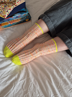 You will need approximately 70g (80g,100g) of fingering weight yarn for your main colour (MC) and 20g of fingering weight yarn for your contrast colour (CC) I used a sock set from Lizzie Bird Yarns in the Sorbet colour way.