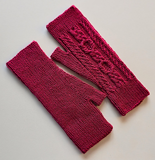It incorporates cables for an eye-catching handmade garment and k1p1 ribbing that gives these gloves extra elasticity and ensures they’ll fit most people.