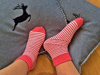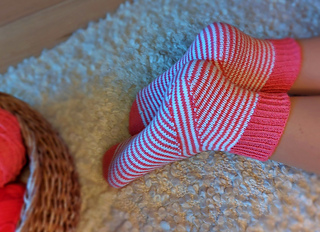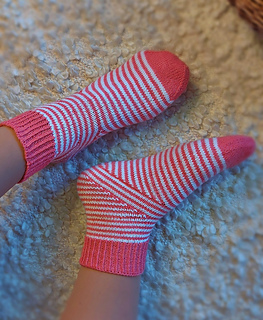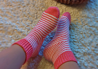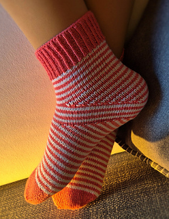 Skills required: basic knitting skills, decrease, increase, basic sock skills, short rows, gusset, turning the heel, short row toe, Kitchener stitch, Provisional cast-on.