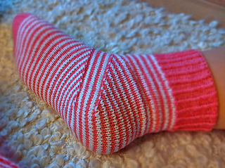 The heel is worked from a provisional cast-on at the heel circumference and the socks are knitted in two directions.