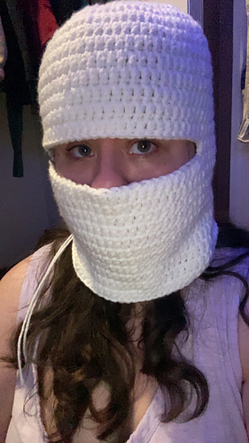 The eye hole will stretch to allow the face to be uncovered if you want it to be!