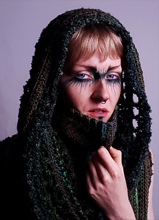 The Wasteland Top features a fitted face covering which folds down into a turtleneck-style collar, an oversized hood which folds down to stretch around the shoulders like a cowl/wrap and corset-style lace up sides.