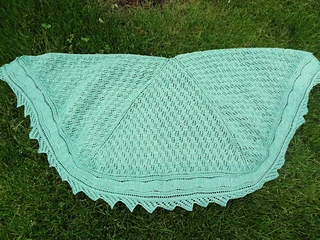 The Water Shawl is a large, flowing semi-circular shawl. The cable detail in this shawl is inspired by the patterns created by rocks splashing on water in the summer time. The largest size in this shawl takes up a lot of yarn, and drapes beautifully for covering up when it gets breezy at night in the summer.