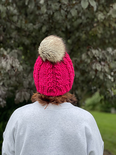 Waterford is a super cozy hat with easy cables that can be knit without a cable needle. It uses super bulky single ply yarn, like Malabrigo – Rasta or We Are Knitters – The Wool, for extra squish and is available in one size to fit an average adult head of 21-23” | 53-58.5 cm. Waterford is constructed in a way that it looks good with or without a pom topper but we prefer a gorgeous faux fur pom pom.