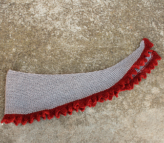 sample was knit in Miss Babs Billow in Turkey Red and Oyster