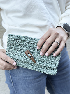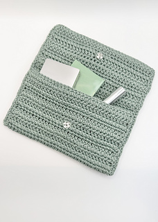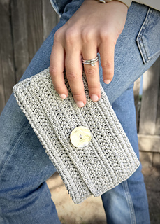 Wayside Clutch Crochet Pattern. This is a PDF pattern download. Come enjoy crocheting this super cute clutch. Contemporary and fun, it can be dressed up or down. Use it for a night out or just at home to store essentials. Clutch is 8” W by 4 1/2” H on the outside with slightly less dimensions on the inside. The pattern includes simple instructions for enlarging the size if desired. This is crocheted with 1.5 mm macrame cord and a 3.5 mm crochet hook. It is best to use cord as results could differ if a yarn is used. A slight bit of hand sewing is needed for the inner snaps and outer button.