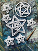 Being a geometer, I am fascinated by shapes - the pentagram, or five-pointed star, being one of my absolute faves. If I can add in a weave, then I am beyond thrilled. The centre forms a pentagon, which allows for further nesting pentagrams.