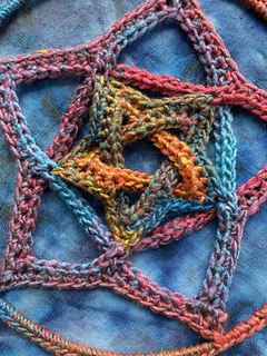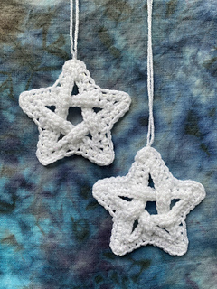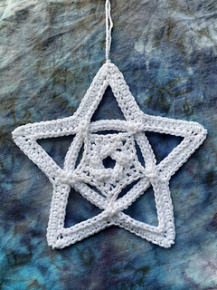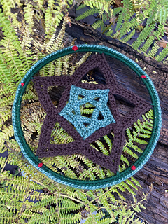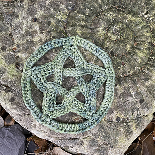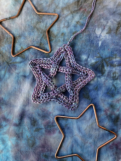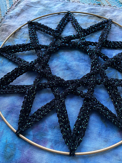 The pattern is made-to measure - I hope you can take what is here and make your weavy pentagram to fit any size star frame or hoop. You can use any yarn weight, hook size and frame sizes that you have.