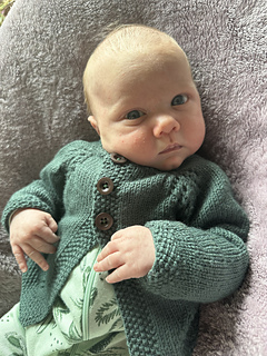 Wee Taytum Cardigan is a classic cardigan with a pretty lace yoke and body.