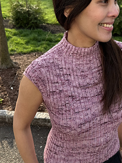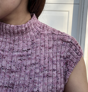 This pattern features a seamless saddle-shoulder construction. It begins at the neckline, with each shoulder worked separately. Stitches are then picked up along the saddle-shoulder edges to work the front and back pieces separately down to the underarm. From there, the body is joined and worked in the round.