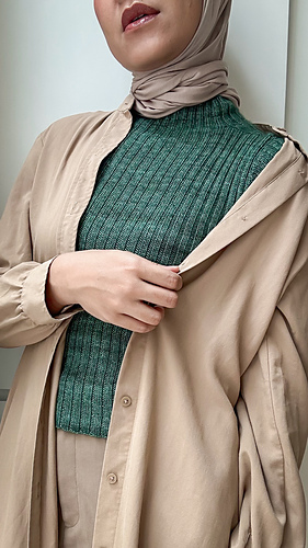 The design is intentionally adaptable. Knit it cropped or longer, simplify the finishing, or add a fancier edging. Whether worn on its own or layered, Wening Ribbed Top reflects a balance between movement and pause—knitted in rhythm, worn in stillness.