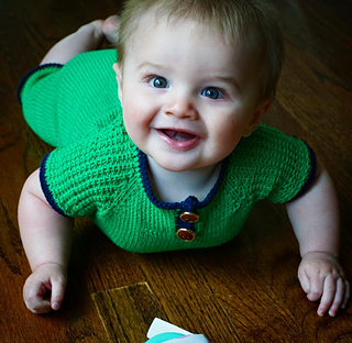 Wesley Romper is a one piece outfit knit top-down. It has contrast hems, slip-stitch sleeve details, and easy access buttons on top and bottom. Don’t worry, this pattern is beginner friendly, and has a photo tutorial for the contrast purl ridge hemming. It can be done with a contrast button band in front (pictured in green), or a contrast crochet loop closure in back (pictured in pink). I use Onion Yarn’s Organic Cotton because I love the color palette and the feel of the yarn. It is machine washable and has the bounce of wool, but in a summer weight cotton. However, feel free to substitute any similar weight (sport) yarn. If in doubt on the sizes, size up! Babies always grow, but rarely shrink, and a lot of us knit slower than we’d like, especially with little ones around.