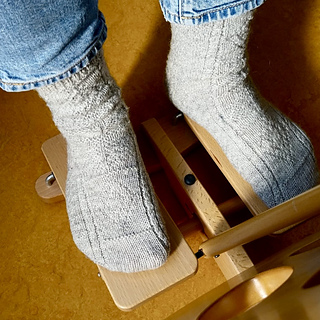 I strongly recommend using a solid yarn or one with only very slight shading. Tightly plied, round yarns are better for good stitch definition. I used Alte Künste sock yarn for the pink pair and Hazel Knits Piquant Lite for the wine-colored pair (which I believe has now been discontinued).