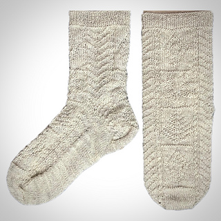 Worked from the cuff down with a heel flap/gusset and a wedge toe, this sock was inspired by the traditional motifs found on the Ganseys worn by fishermen.