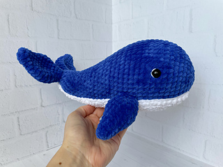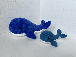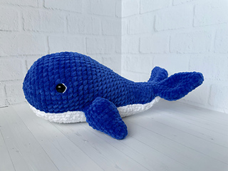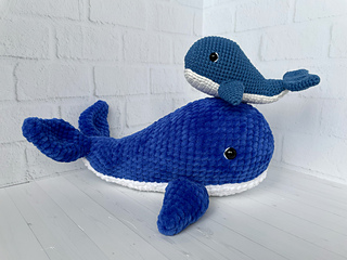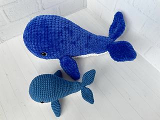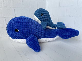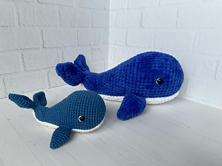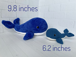 This crochet pattern includes instructions for making a whale approximately 25 cm (9.8 inches) long and 16 cm (6.2 inches) high.