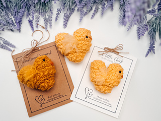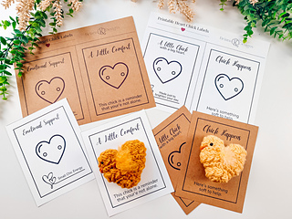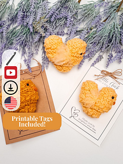 The body features my signature Wheat Stitch™ texture, paired with simple back-loop single crochet increase rounds for clean shaping and structure. A small amount of brushed yarn creates fluffy wings for the cutest finishing touch. Print out one of the included gift tags, tie it on with a bit of twine, and let your little chick go out into the world looking egg-stra official and dangerously adorable.