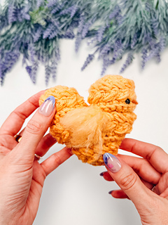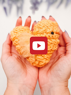 This adorable heart-shaped chick is worked in one piece, beginning at the base of the heart and crocheted upward in joined and turned rounds. At the top, the work is split evenly to form two rounded curves, creating that sweet heart silhouette.