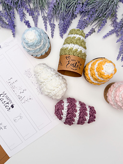 This Egg is worked top-down in joined and turned rounds, starting at the tip and growing wider with simple single crochet increase rounds. Once you reach the Egg’s chonkiest point, even rounds add height while puff rounds pop in to create bold, beautiful texture. Near the bottom, decrease rounds gently taper the shape back in for that classic egg silhouette. Stuff as you go, close it up neatly, and you’re done—cute, cozy, and totally egg-cellent.