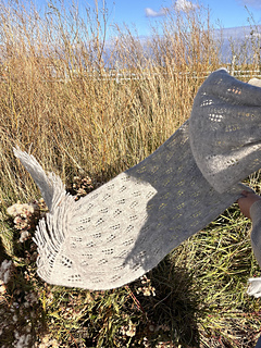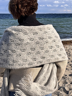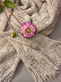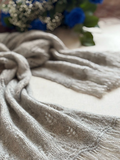 Wzór ażurowy „paproć na wietrze” to subtelne listki, które tańczą razem z wiatrem, tworząc niepowtarzalny efekt lekkiego otulenia.