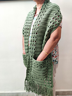 This is not just a scarf — it’s a crochet wrap with pockets that functions as a shawl, scarf, and cozy pocket wrap all in one!