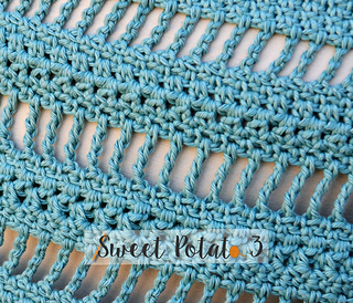 The Whispering Willows Poncho is a beautiful summer wrap. The stitch combination creates a lovely texture and lay of the poncho allowing a slight breeze to go through but there is still enough close stitches to keep you warm.