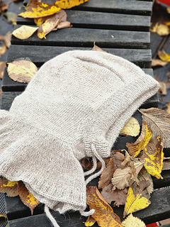 The Whistler Hood is a warm cowl with a spacious hood. The cowl is knitted first in ribbing, fol-lowed by the shoulder section in stockinette stitch. Stitches for the hood are picked up afterward. The hood is knitted back and forth, from the bottom up, in stockinette stitch. It is spacious and features a drawstring casing with a knitted cord.