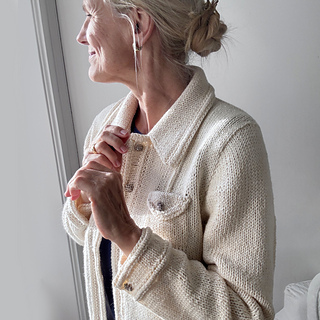 Designed to be a staple in your wardrobe. Knit seamlessly from the top down, it features a unique pattern line on the back and front bands, pockets, and jeans-style cuffs. The detailed instructions guide you through each step, ensuring a satisfying knitting experience - way easier than it might look. promise.