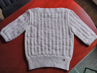 Lacy jumper with instructions for two sizes and option for short or long sleeves. Larger size in brackets. Sample knitted in white.