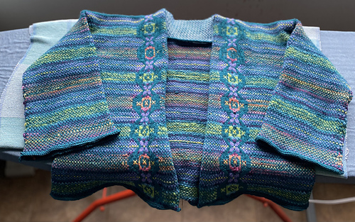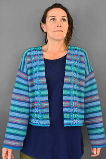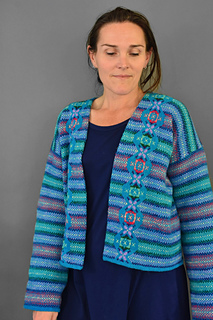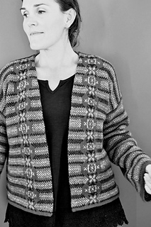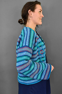 Wild Bight is a top-down, modified drop-shoulder cardigan with a nifty construction at the cast on and a built-in facing at the open Fronts. The body is worked top down and in the round with steeks at each armhole and at the centre Front. The sleeves are picked up and worked in the round.