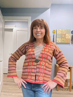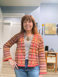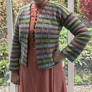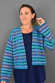 All 8 colours of the Jamieson & Smith 2025 Colourbox colours inspired this sweater. It was an incredibly colourful Colourbox this year and I immediately thought “crayola” and it brought to mind the community called Wild Bight on our amazing island of Newfoundland. Wild Bight used to be home to a paint mine ~ Leah Layden’s Paint Mine ~ a perfectly matched inspirational source for this cardigan celebrating this year’s colourbox. Vertical panels adorn the front and mimic the characteristic curved recesses of coastlines known as bights. Wild Bight is a bight of the wild and a landscape for you to play with colour.