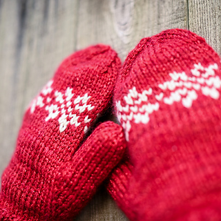 Simple worsted-weight mittens with a little festive colourwork motif.