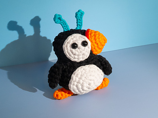 Never too busy to pick snowberries with Pal, this is a delightful beginner(ish) pattern for Will the Arctic Puffin that’s ready to join the North Pole crew for any adventure.