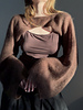 The dark brown Willa Sleeves is worked in Soft Silk Mohair (Chocolate) from Knitting for Olive.