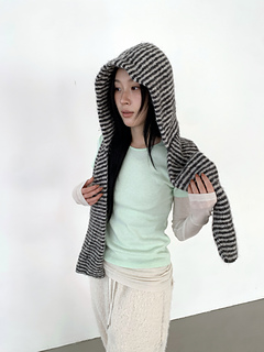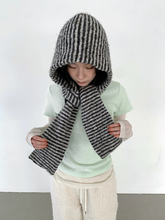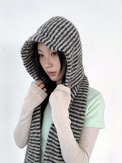 A hooded scarf worked from the scarf tube upward into the hood.