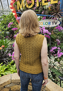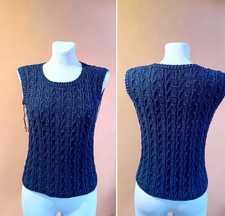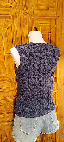 At the underarms, the body is divided and worked flat, with shoulders joined using a three-needle bind-off for a clean finish. The neckline and armholes are finished with a refined stockinette edge and a stretchy bind-off.