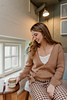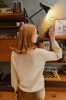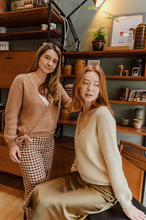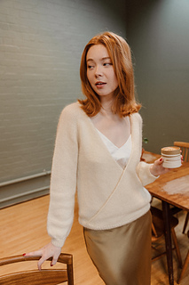 Willow (Wrap) is a beautiful wrap-style sweater with a V-neck, slightly balloon sleeves, and superb details: choose between a crochet or Icord neckline, and a bow finish in double knitting or ribbing at the bottom of the sweater. Knit top-down.