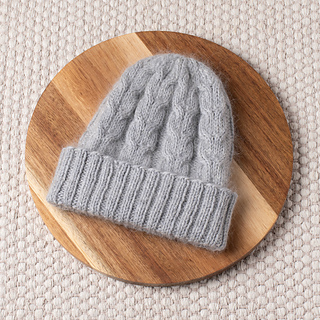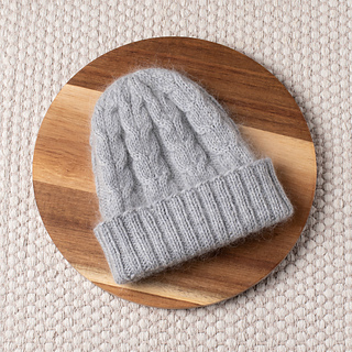 The Winding Path Hat is knit in the round from the bottom up with two strands of yarn held together – DK-weight merino wool and lace-weight mohair.