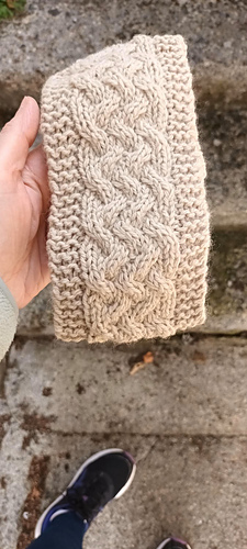 Most aran/worsted weight yarn will work for this project. I used Hayfield Bonus Aran yarn. The width of the headband will be approximately 4 inches when blocked. This pattern is knitted flat using straight needles. It is an excellent pattern for beginners.